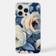 Coque iPhone Roses blanches sur Indigo Arrière - plan bleu