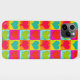 Contemporain rouge vif, turquoise bleu turquoise, vert citron vert, orange et jaune couleur Valentine coeur motif sur un arrière - plan à damiers. Belle couverture moderne et cool pour le brancheur tendance et amateur d'art branché, amoureux de motifs artistiques qui veut protéger leur téléphone de la poussière et de la saleté, de l'usure et de la déchirure. Cette conception est disponible en coques de téléphones portables Apple iPhone 6, 7 et 8 Plus, 10 ou X, XR, XS, 11, 12, 13, 14 Mini, 15 Plus et Pro Max. Montrez votre style, regardez à la mode et sentez élégant avec un design unique sur un appareil mobile de votre choix.