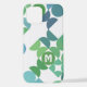 Beau bleu turquoise contemporain, fougères et vert shamrock cercles géométriques et demi-cercles motif sur un arrière - plan blanc immaculé. Avec l'option de customiser ou de personnaliser avec un nom monogramme ou initiales de votre choix. Design orné, élégant, élégant, élégant et éclectique pour la fashionista artistique sophistiquée, la diva de mode artistique, populaire branché, style d'art rétro vintage, et abstrait amateur de motifs géométriques numériques. Cette conception est disponible dans les coques de téléphones cellulaires Apple iPhone 6, 7 et 8 Plus, 10 ou X, XR, XS, 11, 12 et 13 Mini, 14, 15 Plus et Pro Max. Montrez votre style, regardez à la mode, et sentez élégant avec un design unique sur un accessoire mobile de votre choix.