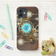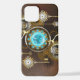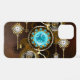 Turquoise lenses with antique watch with brass gears and golden keys on rusty, brown background. Steampunk style.