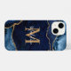 Coque iPhone Stylo Marine Blue Agate Geode Gold Script Monogram