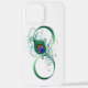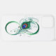 Le symbole de l'infinity with a bright, green, artistic peacock feather on a white background. Tattoo style.