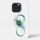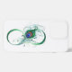 Le symbole de l'infinity with a bright, green, artistic peacock feather on a white background. Tattoo style.