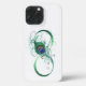 Le symbole de l'infinity with a bright, green, artistic peacock feather on a white background. Tattoo style.