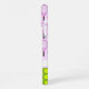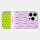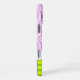 Personalize this pretty iPhone case with a name or other short text. Tennis balls create a bright polka dot pattern, and there is a further pattern of pink tennis rackets on a pale pink background.