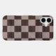 A sleek and stylish phone case featuring a sophisticated checkered pattern with a matte finish. The design combines shades of brown and black in a classic grid, offering a modern yet timeless aesthetic. This case provides both protection and a unique, understated look for your phone.
