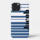 Coque iPhone Trendy Blue Striped Custom Name iPhone Case