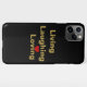 Étui téléphonique "Living, Laughing and Loving" inspirant noir et or. La couleur noire de l'arrière - plan peut être modifiée par le client. Le coeur rouge est devant le coeur doré. Vous pouvez choisir celui à garder dans le design. Par celeste@khoncepts.com