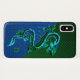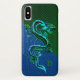 Coque iPhone X à thème imaginaire coloré fait dans un vert sur motif dégradé vert, sur la partie supérieure du coque et un motif bleu dégradé, sur la partie inférieure. Graphisme d'un dragon de style chinois bleu et vert, orne le milieu du coque. Personnalisez le monogramme d'une lettre verte pour répondre à vos besoins.