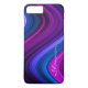 Bandes d'ondes abstraites personnalisées dans les violets et les bleus. Conception frappante de violet, violet, lavande et bleu dans un motif d'onde élégant, fluide et rythmique. Abstrait iPhone Six Plus coque violet et bleu. Personnalisez le coque en ajoutant votre propre texte (ou vous pouvez choisir de supprimer du texte).