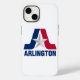 iPhone 14 Coque avec le drapeau d'Arlington, Texas. Un drapeau blanc avec une lettre bleue et rouge A et une étoile argentée au centre