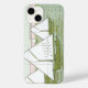 Un coque iphone aux motifs nautiques de carreaux anciens montre des voiliers sur des eaux calmes dans des tons verts et roses pastel.