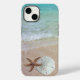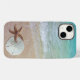 Coque iphone de scène de plage de Starfish et de sable dollar. Pour les amateurs de plage et de plage, ce coque convient à de nombreux modèles de téléphone. Eau tropicale turquoise de l'océan, petit surf au bord et sable de plage est l'image. Des images d'étoiles de mer marron et d'un dollar de sable blanc ornent le fond de la scène de plage.