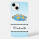 Un coque iphone personnalisé avec des lettres de script et Cinderella ' ; s glissière en verre sur un coussin en bleu turquoise et orange, art antique restauré à partir d'un dessin vintage dans un livre de contes sur un arrière - plan rose Cliquez sur Customiser pour modifier les polices ou le dimensionnement, ajouter une photo, modifier le type de périphérique, même enregistrer votre conception pour plus tard.