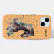 iPhone 15 coque sur un arrière - plan jaune doré avec un joli portrait de cheval avec des fleurs. Merci à Creative Fabrica pour certains des éléments du design. Le nom du coque peut être modifié.