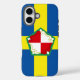 iPhone 16 Coque avec design avec un drapeau du comté historique de Pembrokeshire, au Pays de Galles, Grande-Bretagne; drapeau bleu azur avec croix jaune et rose Tudor blanc dans le centre