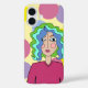 Design coloré, lumineux, abstrait d'un visage stylisé d'une fille aux cheveux rayés, avec un arrière - plan de cercles.