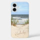 Boîtier téléphonique à thème de plage tropical avec photo de la mer avec dunes de sable et herbes de mer, avec vagues dans l'arrière - plan et nom ou texte personnalisable de votre choix.