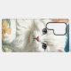 Coque Samsung Galaxy avec un chaton dans le style Art Nouveau d'Alphonse Mucha! Un chaton blanc et moelleux aux yeux bleus pose avec des fleurs jaunes. Un joli cadeau pour les amoureux de les chats et les collectionneurs Art Nouveau!