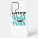 Accumulez votre ambition avec cette puissante citation motivationnelle. "Ne vous arrêtez pas jusqu'à ce que vous soyez fier" est une déclaration de détermination et un rappel pour continuer à avancer vers vos objectifs. Le mélange dynamique de polices audacieuses et de polices de caractères en fait un design élégant et impactable pour tous ceux qui se consacrent au succès et à la réussite personnelle.