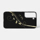 Voici un élégant boîtier téléphonique qui comporte une feuille d'or moderne tourbillonnant contre un arrière - plan noir dramatique. Votre monogramme à deux lettres est à gauche en or pâle assorti.