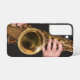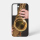Pour les mélomanes ! Protégez votre téléphone Samsung Galaxy S22 avec ce boîtier de téléphone branché qui présente l'image d'un jazzman jouant sa corne de saxophone ténor de couleur or usée. Sélectionnez votre style de téléphone.