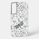 Dragonfly et diverses fleurs et feuilles. Motif vectoriel Doodle en noir et blanc.