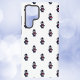 Do you like cute phone cases? This phone case features a pattern of gray cats playing the snare drum and wearing a navy blue and red marching band uniform.