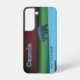 Un ours polaire (Ursus maritimus) sillonne la glace pendant la longue nuit polaire; les aurores boréales en rouge et vert au loin. Le texte "Canada" apparaît également en bleu et blanc brillant. Customisez en ajoutant votre propre texte supplémentaire.
