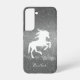 Chargez votre appareil électronique avec un Coque Silver Parties scintillant Unicorn Samsung Galaxy. Le design coque comprend une licorne qui se promène dans un sentier étoilé contre un arrière - plan parties scintillant.
