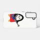 Aimez-vous les cas de téléphone mignons ? Aimez-vous les pingouins ? Un adorable pingouin en short rouge joue de la basse guitare sur cette étagère téléphonique.