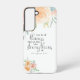 Ce coque inspirant Samsung est orné de fleurs d'eau douce de pêche et de vert pastel. Nous avons ajouté des écritures de Philippiens 4:13 "Je peux faire tout par lui qui me fortifie."