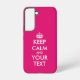 Restez calme et continuez sur mème neon rose coutume Samsung Galaxy S22 Coque. Faites votre propre personnalisation gardez calme citation. Couleur arrière - plan rose ou personnalisée. Amusant design modèle avec typographie moderne et couronne princesse. Les couleurs peuvent être changées.