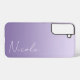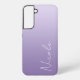 Un étui Samsung personnalisé dans un design moderne et doux dégradé violet. La police de script d'écriture à la mode ajoute une touche unique lors de l'ajout de votre nom.