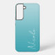 Un étui Samsung personnalisé dans un design moderne turquoise dégradé bleu. La police de script d'écriture à la mode ajoute une touche unique lors de l'ajout de votre nom.