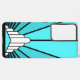 Un motif de style art déco classique créé en aqua. Un motif emblématique du soleil se levant derrière un bâtiment en forme d'art déco stylisé. Un design simple mais élégant, fidèle à l'époque.