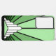 Un motif de style art déco classique, créé en vert. Un motif emblématique du soleil se levant derrière un bâtiment en forme d'art déco stylisé. Un design simple mais élégant, fidèle à l'époque.