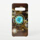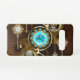 Turquoise lenses with antique watch with brass gears and golden keys on rusty, brown background. Steampunk style.