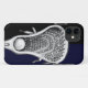 Boîtier de téléphone de crosse avec une illustration de bâton de laxisme sur un arrière - plan bleu marine et noir.