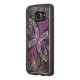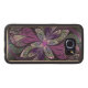 © 2014, Susan Wallace de Copyright. Conception abstraite en verre souillé de faux de feuille aux nuances du pourpre lumineux, de l'argent, du bigorneau et de la violette encadrant une fleur centrale de pourpre vibrant.