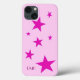 Coques Case-Mate iPhone 7 Étoiles Fuchsia et texte rose personnalisé