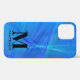Ce coque iPhone 12 dispose d'une flamme fractale bleue abstraite avec un monogramme noir et un nom en dessous.