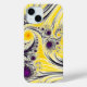 Ce boîtier téléphonique unique présente une abstraite fractale soyeuse en jaune, noir et violet.