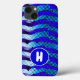 Coques Case-Mate iPhone Abstrait Motif de vague funky bleu, vert monogramm