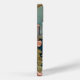 coque iphone avec un chat blanc dans le style d'Alphonse Mucha ! Ce chaton aux yeux bleus pose avec des fleurs roses et des couvertures bleues. Un cadeau fabuleux pour les amoureux de les chats et les collectionneurs Art Nouveau !