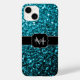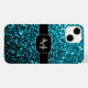 Aqua bleu brillant faux parties scintillant scintille Monogram Coque-Mate coque iphone. Personnalisez avec votre initiale et votre nom. Boîtier téléphonique unique faux brillant avec de belles parties scintillant brillantes bleu clair brillant ceinture. Photo de cyan bleu étincelle pas de parties scintillant réelle !