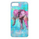 Coques Case-Mate iPhone Aquarelle bleue faite sur commande d'éléphant rose