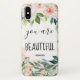 C'est une belle pièce avec un magnifique blanc et une fleur rose aquarelle design avec la citation "tu es belle" dans une police amusante, filante et scriptive.