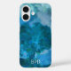 Coques Case-Mate iPhone Aquarelle moderne bleu et vert sur mesure Monogram
