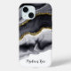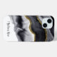 Ce Coque Watercolor Gold Black Personnalise iPhone 15 dispose d'un élégant noir et gris avec un design en faux parties scintillant or, prêt pour vous à personnaliser avec votre nom. Cette étagère téléphonique moderne et élégante ferait aussi un grand cadeau pour un ami ou un proche.